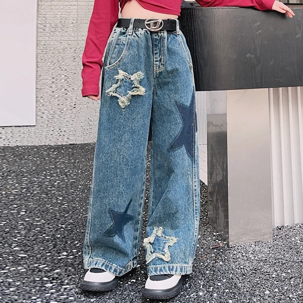 These jeans are designed for girls and feature a loose fit that is perfect for any activity. The elastic waist and light wash give them a casual style, making them a versatile addition to any wardrobe. They are made without any high-concerned chemicals, making them safe for children. The jeans also come in sizes 120-170, ensuring a perfect fit for every child.