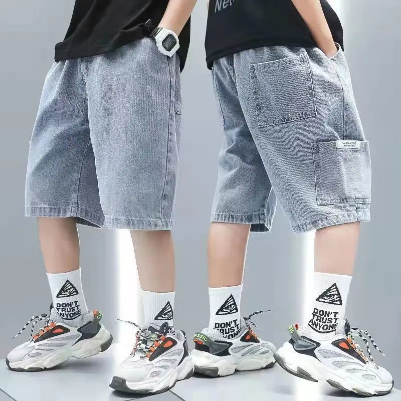 Realself's Comfy Stretch Denim Shorts With Pockets are the perfect blend of comfort and style for children ages 7-13. Made with a mix of 42% Cotton, 40% Polyester, 16% Other Fibers, and 2% Spandex fabric, these shorts provide a relaxed and loose fit that is perfect for any activity. With an elastic waist closure and a non-stretch fabric, these shorts are durable and easy to care for, as they can be machine washed without the concern of any harmful chemicals or the need for dry cleaning. Designed to fit true to size, these shorts are suitable for both boys and girls and come in a variety of solid colors, making them a versatile addition to any wardrobe. Whether it's a day at the park or a trip to the beach, these knee length shorts are a must-have for any child who values both comfort and style. Take advantage of Realself's quality and expertise and choose these Comfy Stretch Denim Shorts