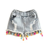 Expertly crafted for children aged 7-13 years, our Cute Denim Shorts offer both style and comfort. Made with a blend of POLYESTER and COTTON, these shorts are free from any harmful chemicals, ensuring the safety of your child. The elastic waist and regular fit make it easy for kids to move around without feeling restricted. The denim blue color and tassel hole pattern add a touch of fashion to your child's wardrobe. Perfect for summer, these shorts come in a range of sizes to fit girls from 2 to 10 years old. Upgrade your child's summer wardrobe with our Kids Girls Denim Tassel Hole Shorts.