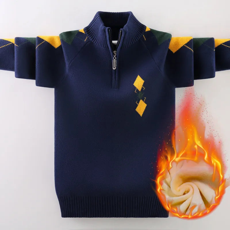 Designed with active kids in mind, this sweater features a comfortable O-neck design, single breasted closure, and full sleeves to keep them cozy during the cold winter months. Made from soft and breathable cotton, this classic sweater is perfect for boys ages 3-12, making it a versatile and stylish choice for any child's wardrobe.