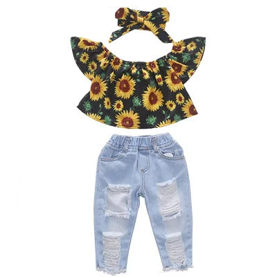 Expertly designed for both comfort and style, this set features a floral patterned vest and a soft cotton shirt and denim pants. Designed specifically for children, this set is the perfect addition to any young girl's wardrobe. With a comfortable fit that is true to size and a closure-free design, this set is both easy to wear and stylish. Keep your child fashionable and comfortable in this expertly crafted set.