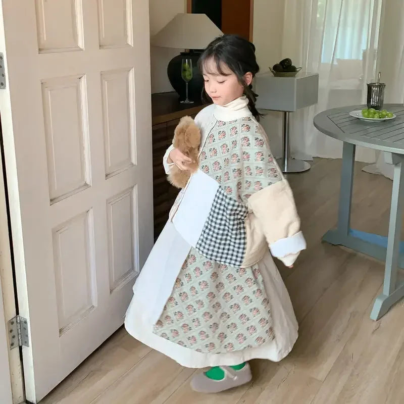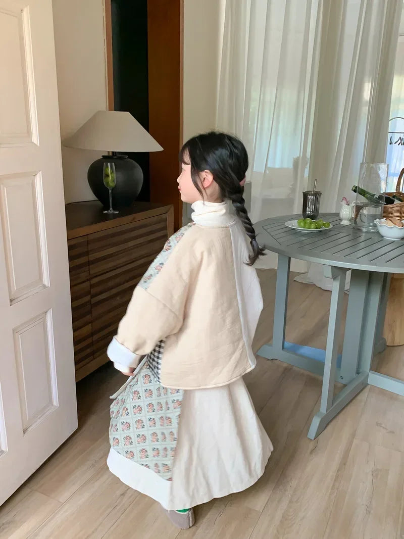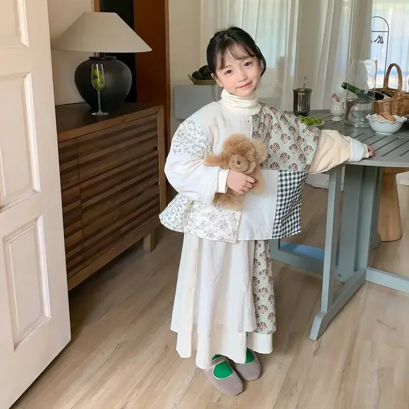 This clothing set is designed to fit children from 13 months to 12 years of age. With a single-breasted closure and an O-neck collar, this set is made of durable cotton fabric and includes a coat for the cooler seasons. The patchwork design adds a unique touch of style while the full sleeves and regular fit ensure comfort and a true-to-size fit. Perfect for both spring and autumn seasons, this fashionable set is a must-have for any young girl's wardrobe.